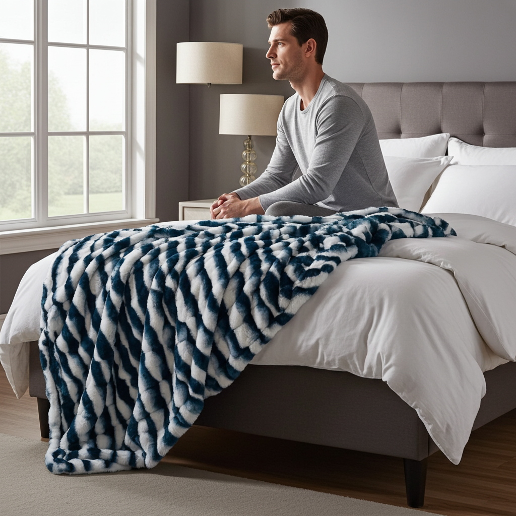 Plutus White Navy Snow Chinchilla Faux Fur Luxury Throw Blanket