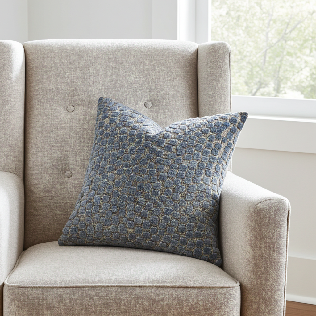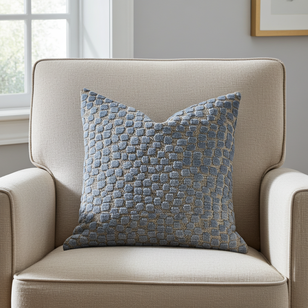 If eyes are the windows to the soul, then this decorative pillow is the windows to the design beauty of one’s dream. Add a special touch of texture and comfort to your living space with this designer dusky gem blue and silver luxury throw pillow. The fabric of this luxury pillow is a blend of Polyester and Viscose.