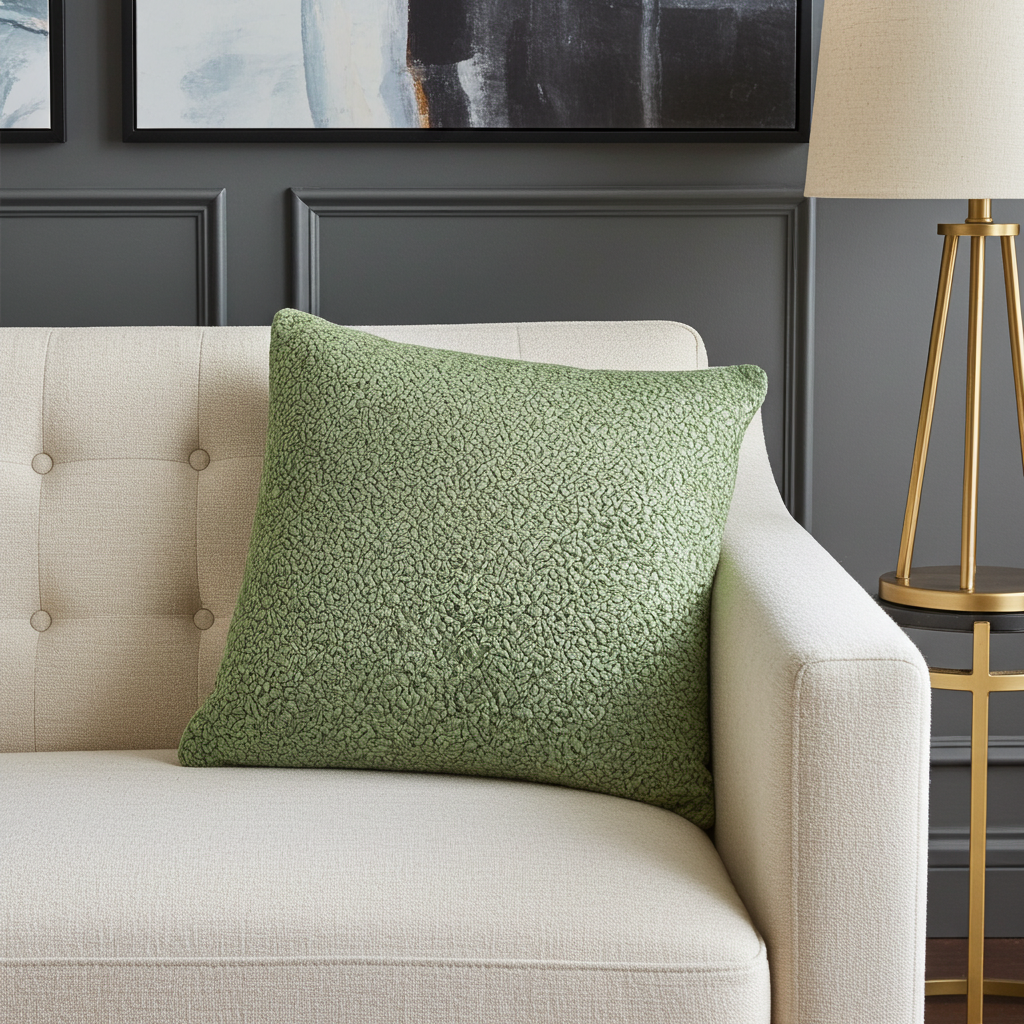 Accessorize your space with this designer mulberry lasso green tones luxury throw pillow. The fabric of this trendy pillow is a blend of Viscose and Polyester.