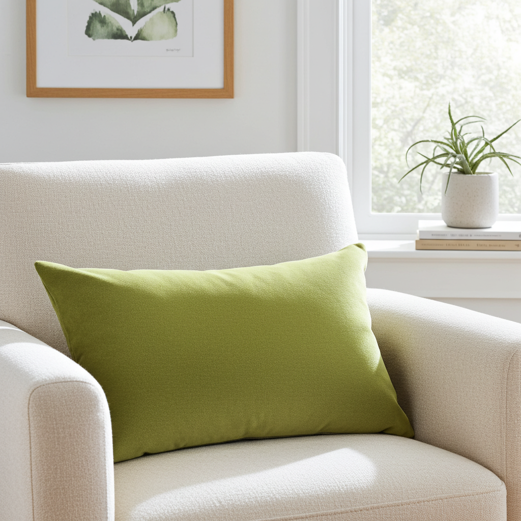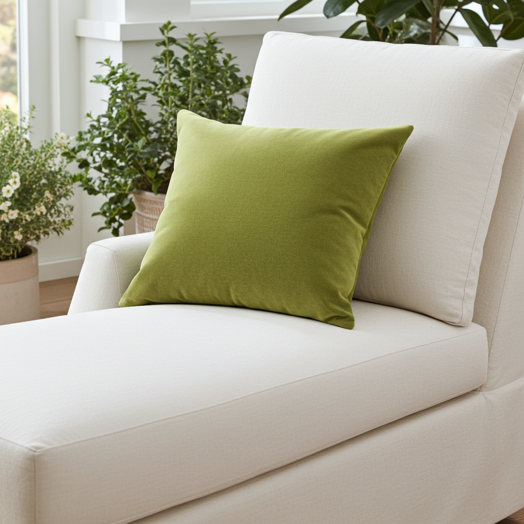 Add a rich statement piece to your space with this plutus pistachio love green handmade luxury pillow. The fabric is a blend of Cotton.
