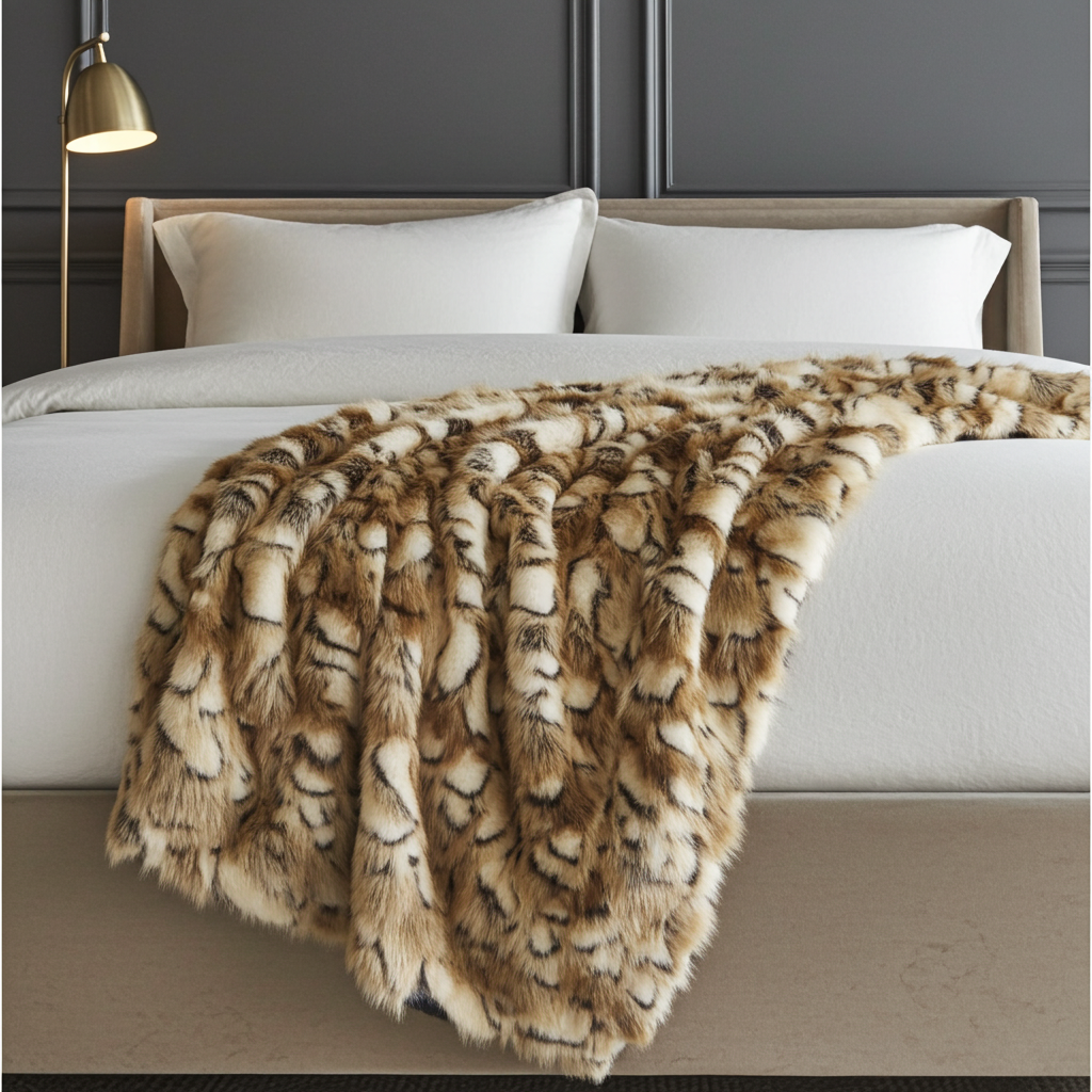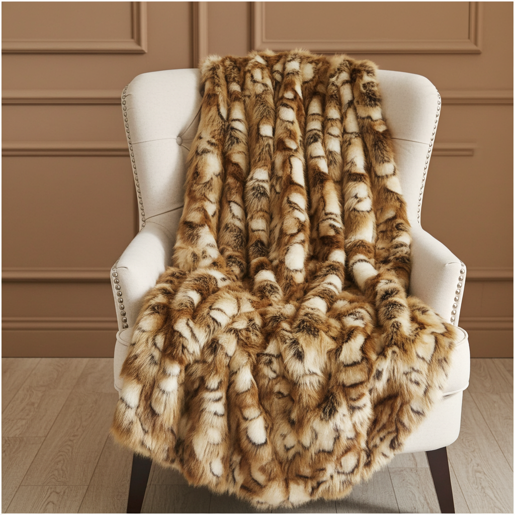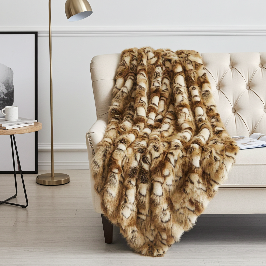 Brandy Gold and White Faux Fox Handmade Luxury Throw