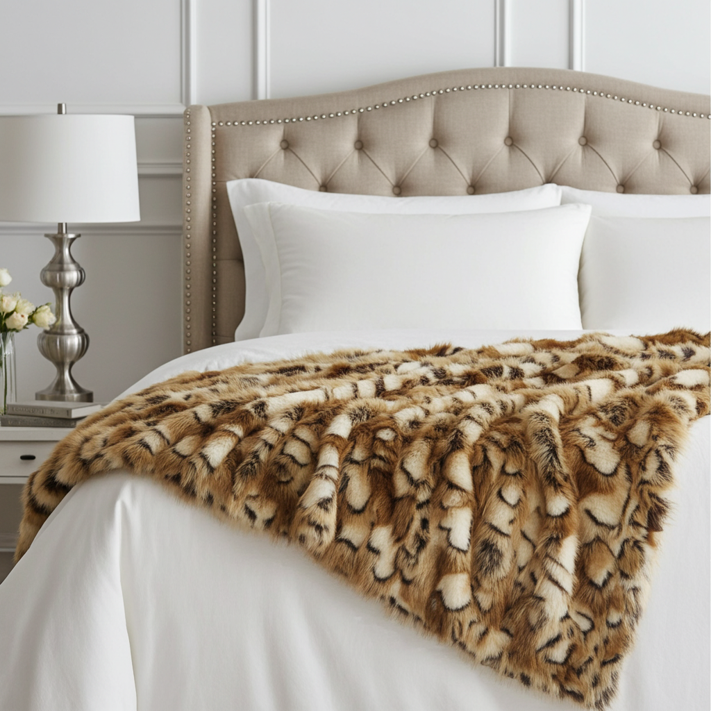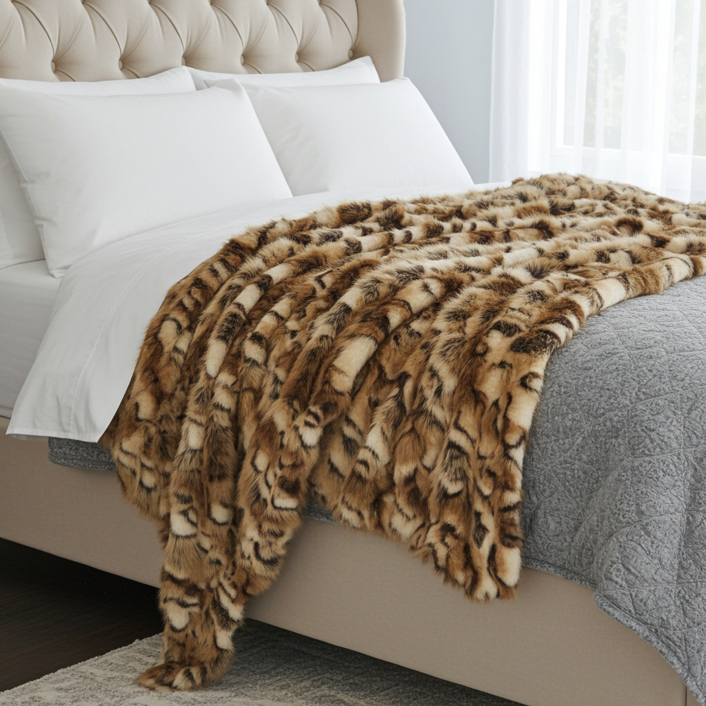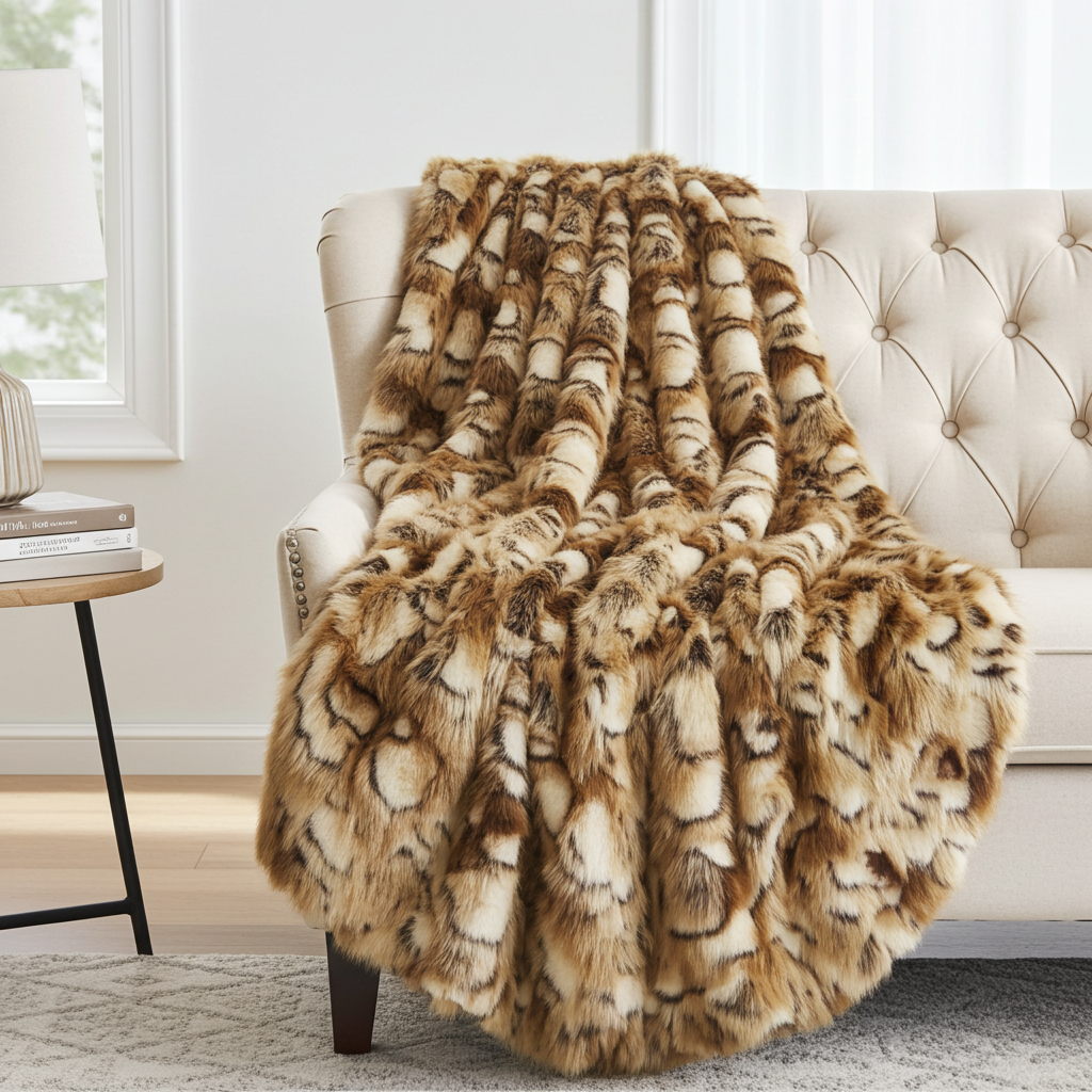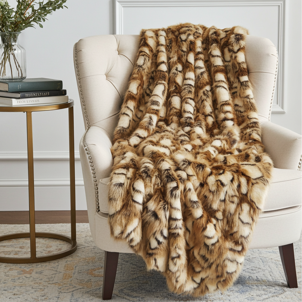 Brandy Gold and White Faux Fox Handmade Luxury Throw