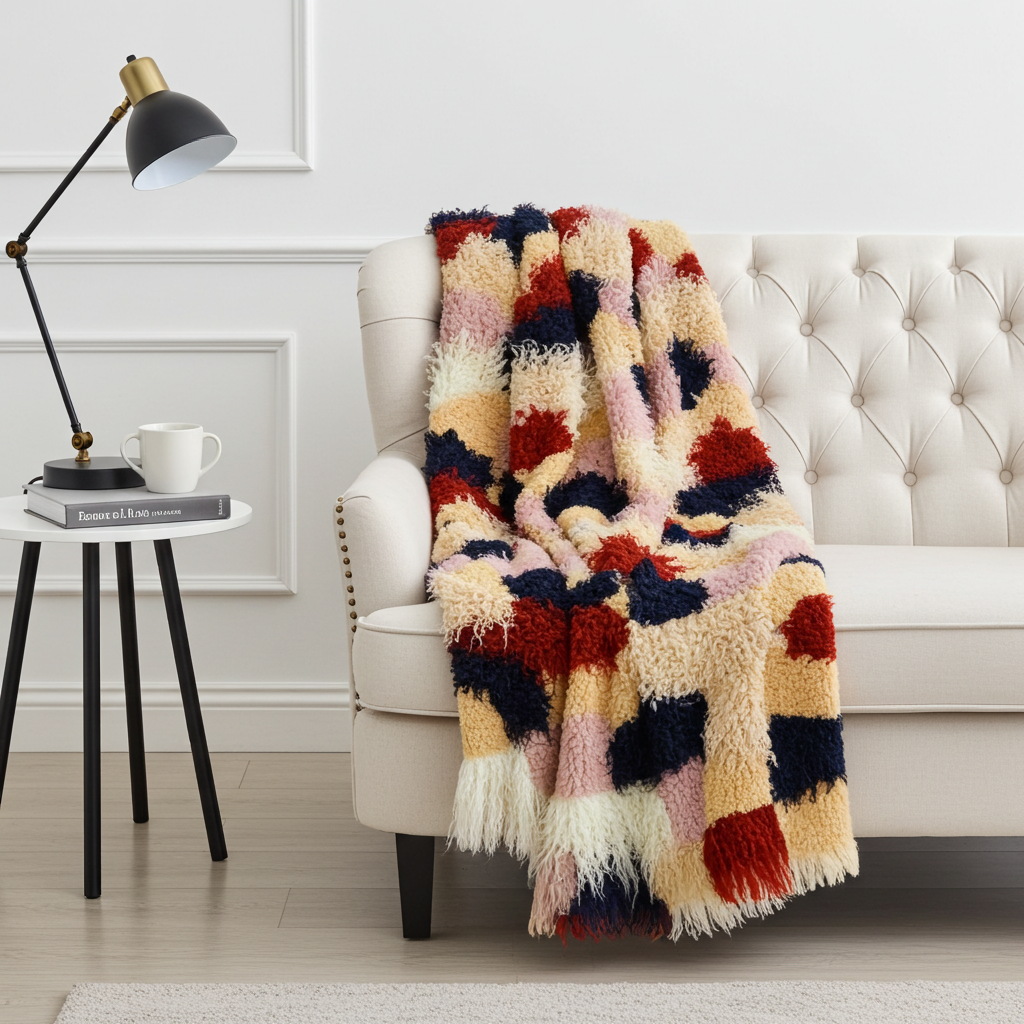 Fanciful Boho Plush Handmade Luxury Faux Fur Throw