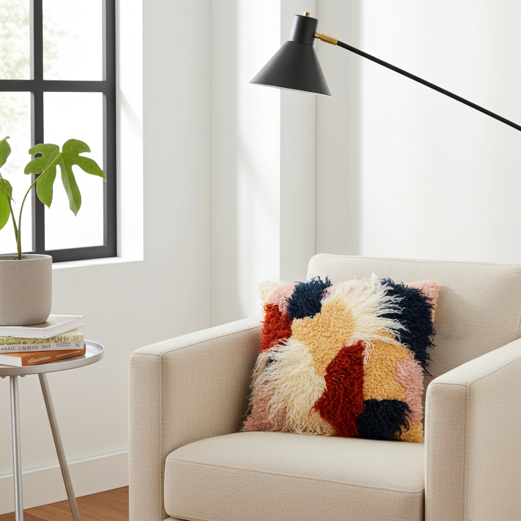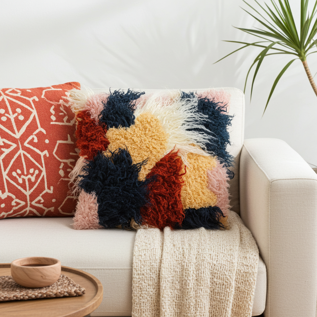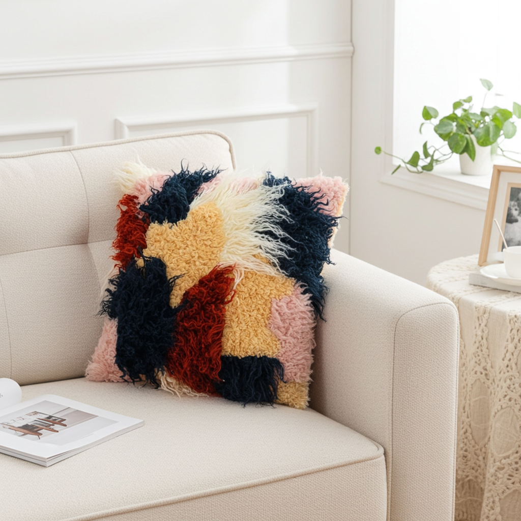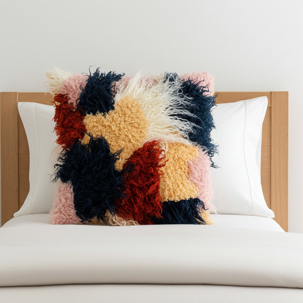 Luxury, trendy and definitely a conversation starter. Made from the finest materials to dazzle your eyes and feed your senses. Give your guests and vistors something to think about! Insert included. plutus red, white, blue fanciful boho animal faux fur luxury throw pillow. The fabric of this luxury pillow is a blend of Acrylic.