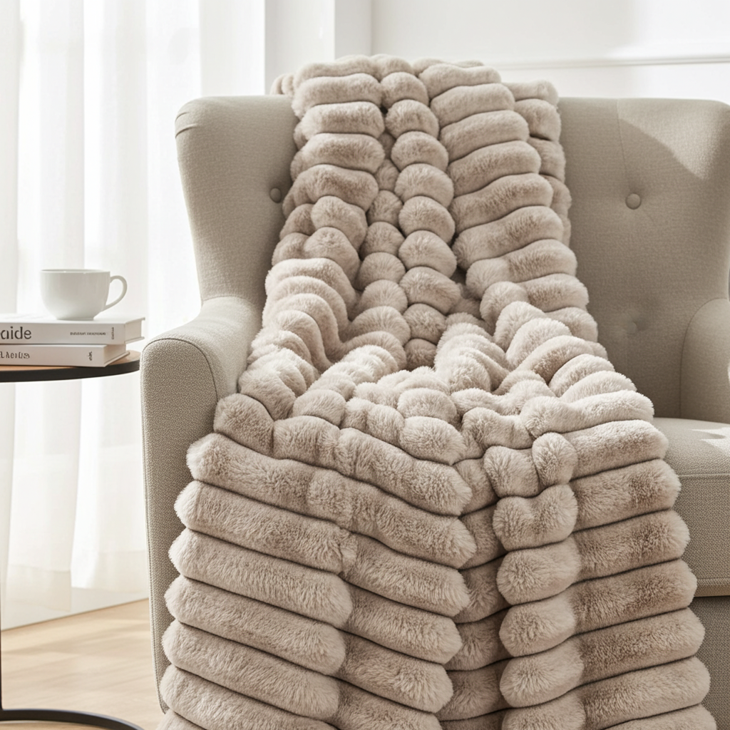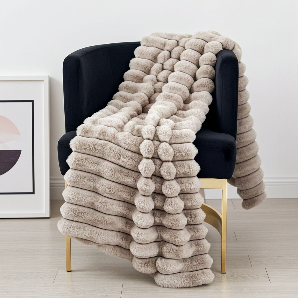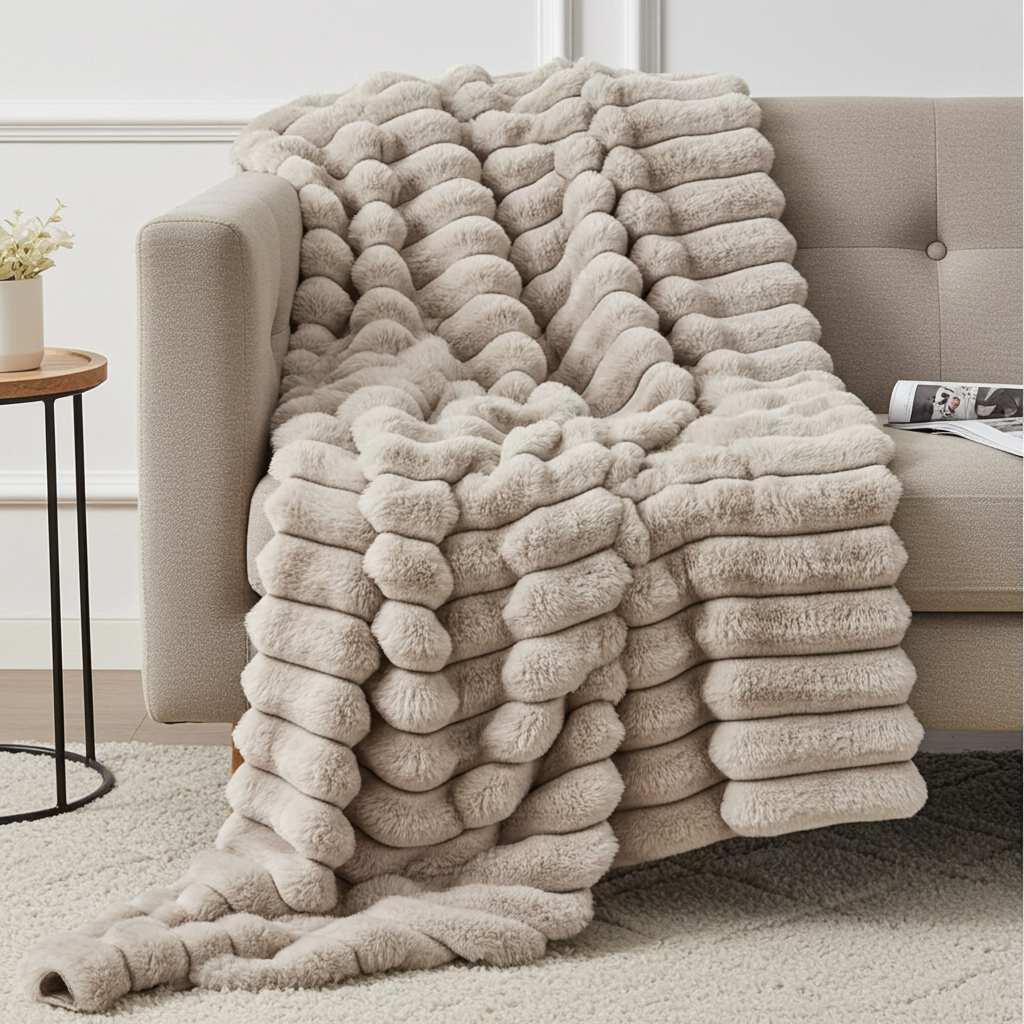 Plutus Taupe Luxe Bunny Faux Fur Luxury Throw Blanket