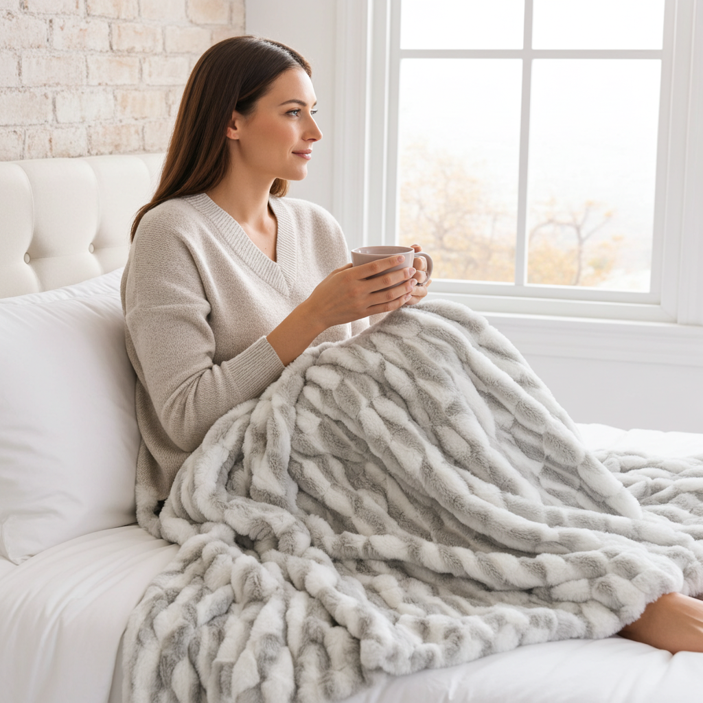 Plutus White Silver Snow Chinchilla Faux Fur Luxury Throw Blanket