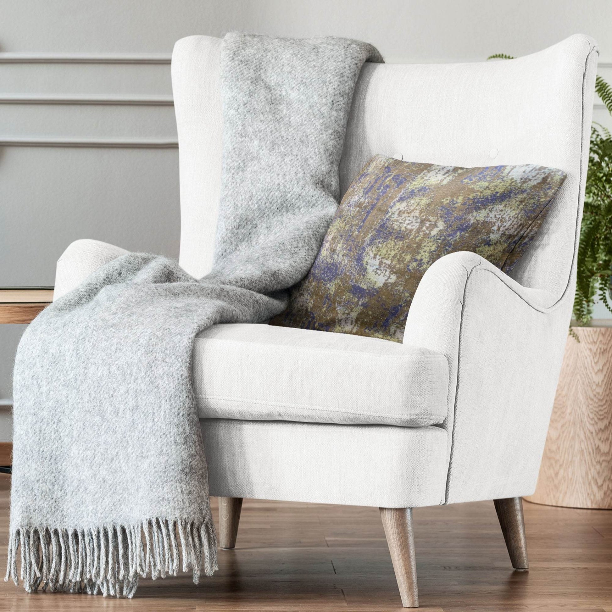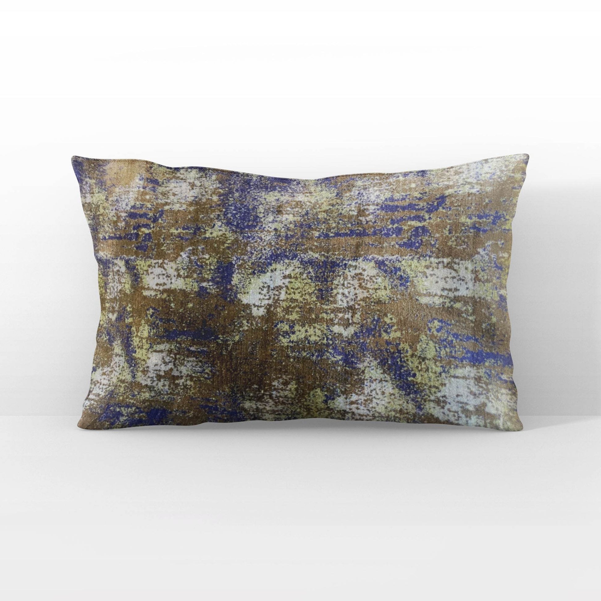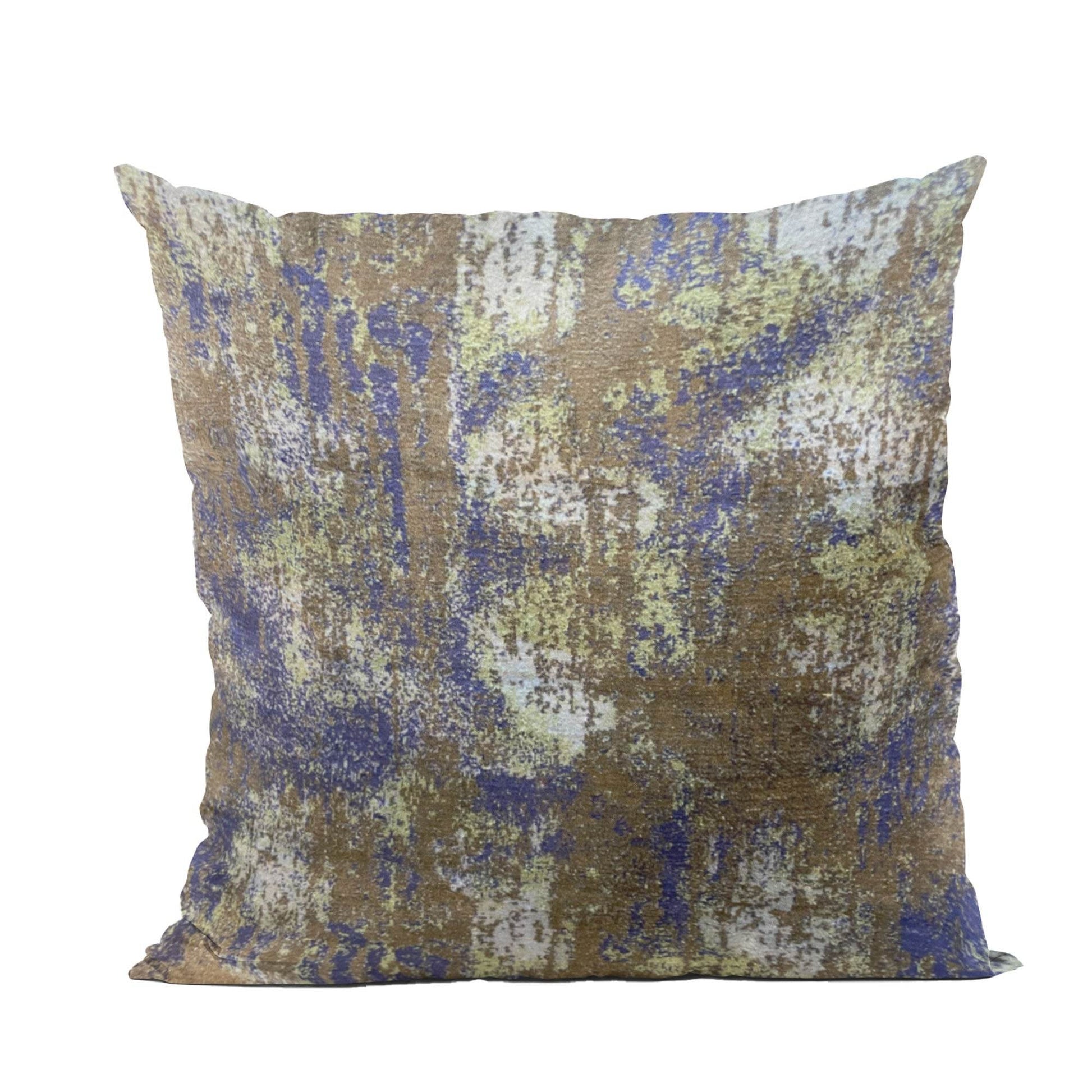 Plutus Weathered Texture iKat Yellow Brown Blue Velvet Luxury Throw Pillow