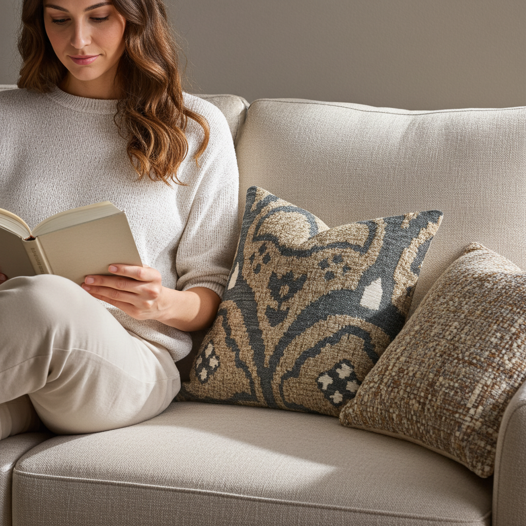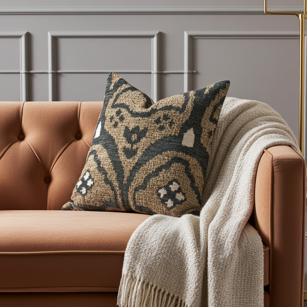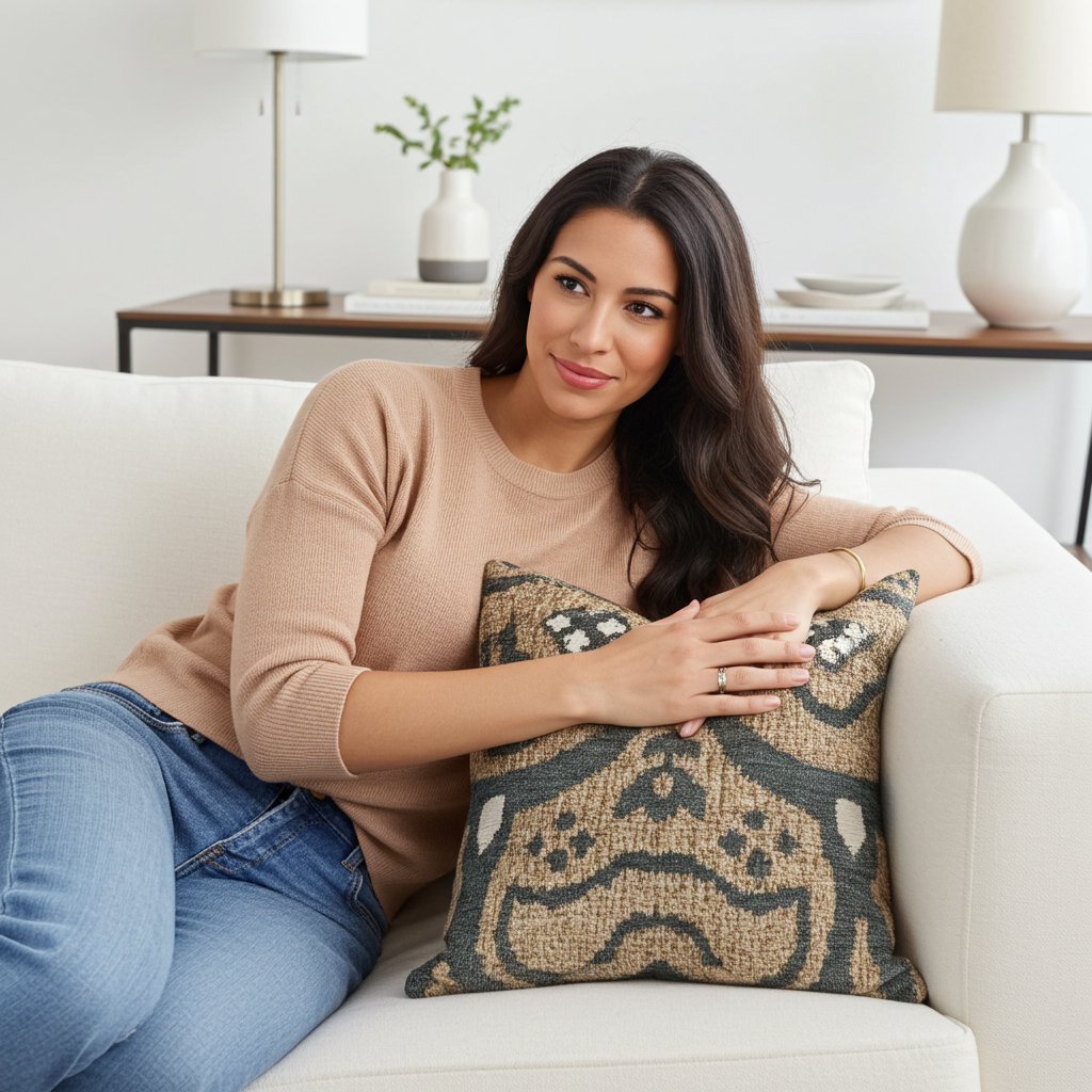 Tulip Zen Green Taupe Luxury Throw Pillow