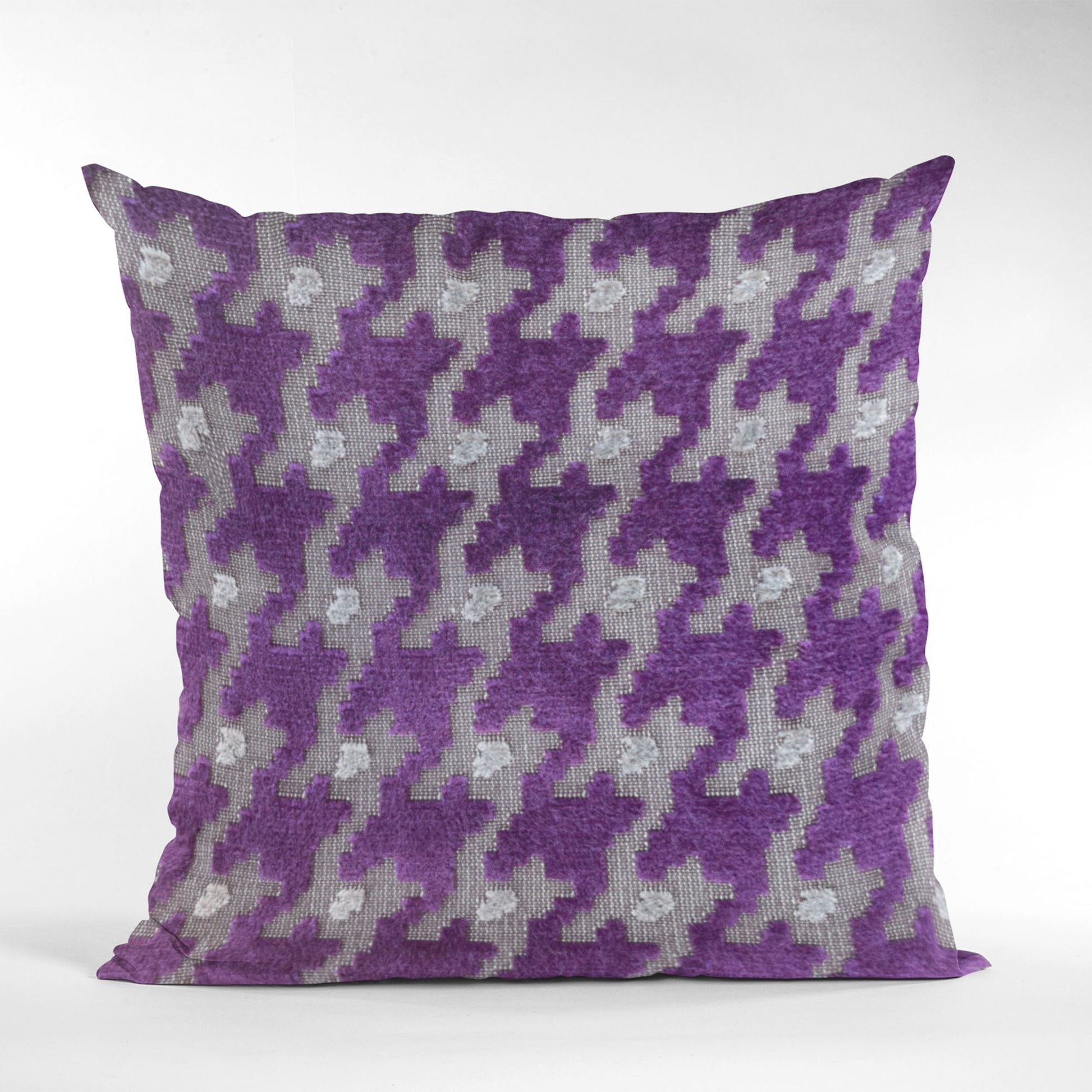 Exemplifying endless elements of extravagant style and upbeat design, this is the pillow you’ve been daydreaming of! Sure to sparkle in any space. Create instant charm to your home décor with this plutus velvet plum magenta and taupe handmade luxury pillow. The fabric is a blend of Polyester and Rayon.