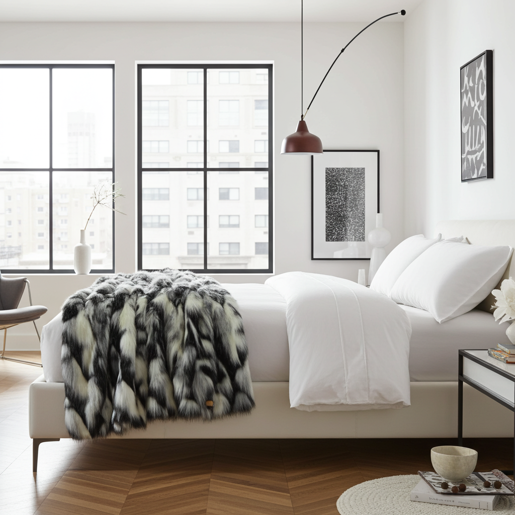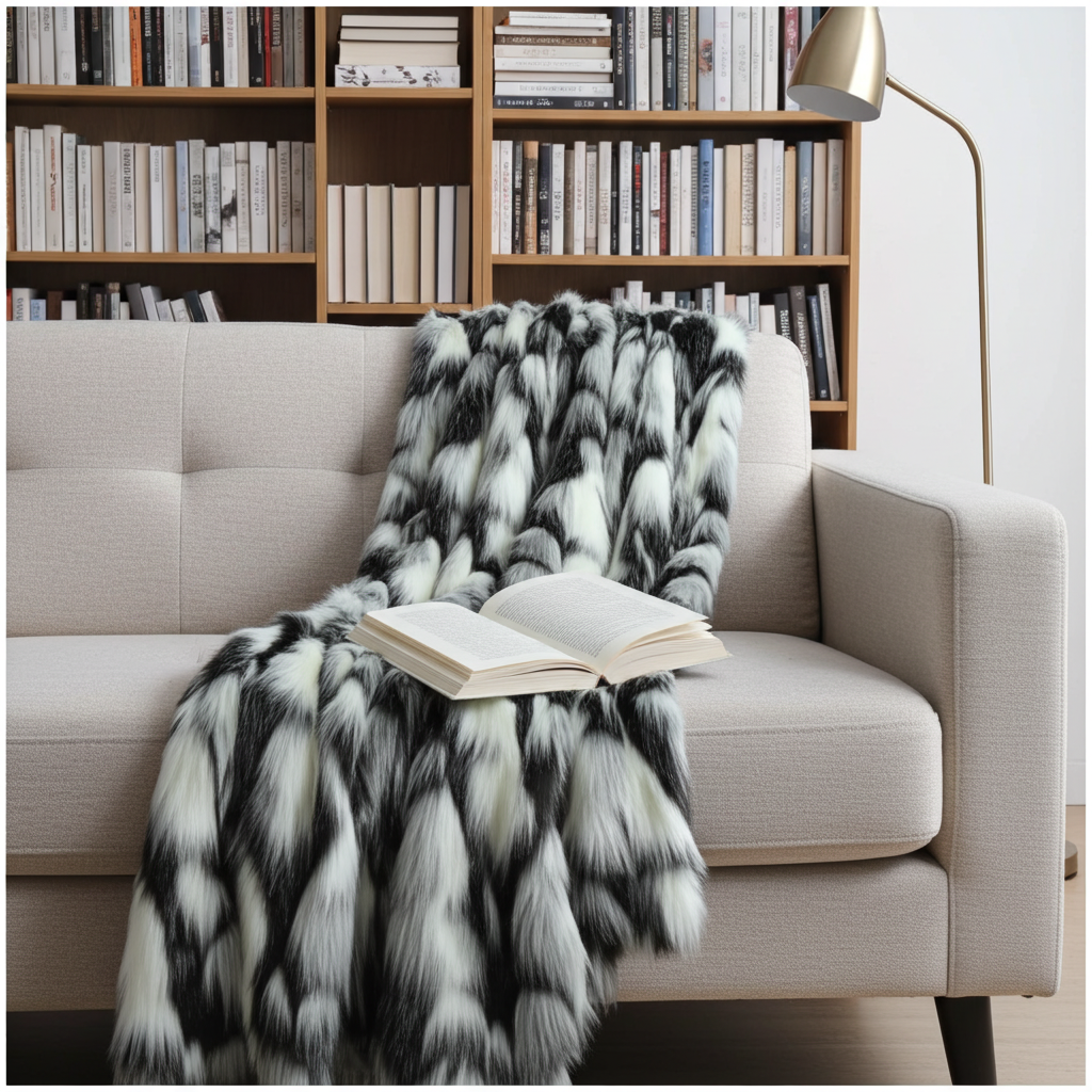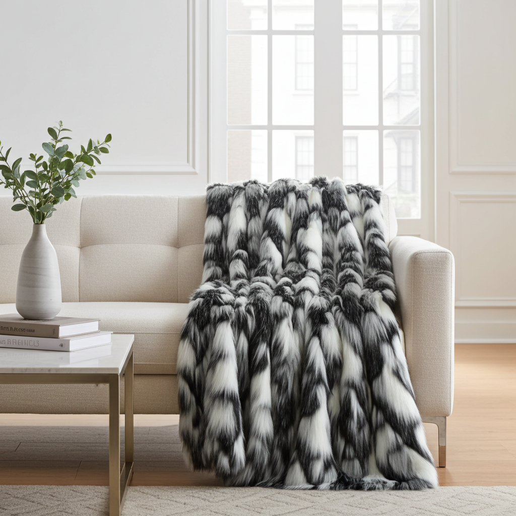 Add a touch of elegance to your home with this stunning Tibet Fox ivory faux fur throw blanket in ivory beige and gray colors. The Tibet fox fur is very soft and comes with a super soft microfiber backing. *Handmade in USA*