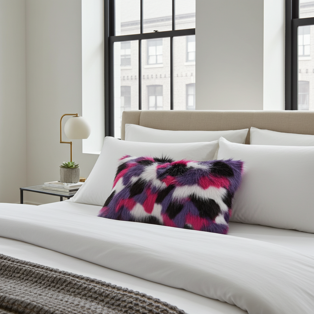 This luxurious pillow adds a touch of glam and an irresistible invitation to snuggle up with a loved one. Experience the ultimate indulgence with our premium faux fur pillow and surrender to pure bliss.Our exquisite pillow is crafted from the finest materials, carefully selected to imitate the look and feel of real animal fur.plutus purple pink fureal animal faux fur luxury throw pillow. The fabric of this luxury pillow is a blend of Polyester.
